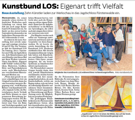 Der Kunstbund LOS stellt an zwei Wochenenden im Jagdschloss in Fürstenwalde aus: 6. und 7. und 13. und 14. September 14.-18.Uhr